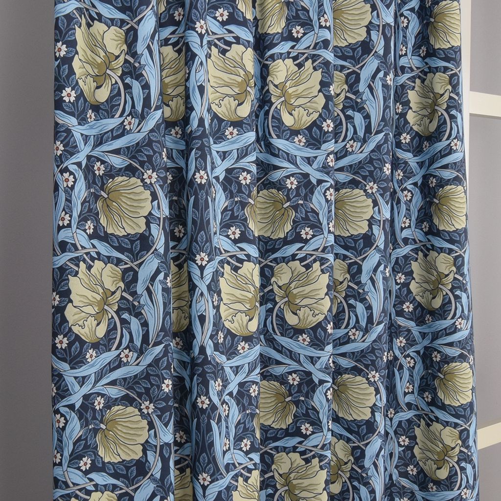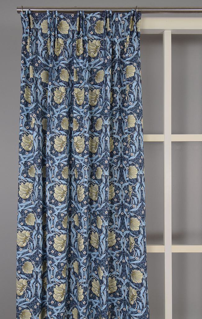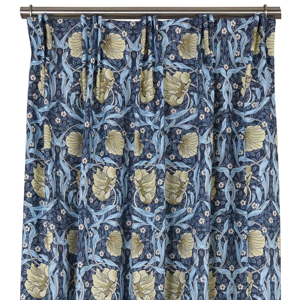 Beskrivning av Grace blå gardiner - Klassisk blommig Arts and Crafts design