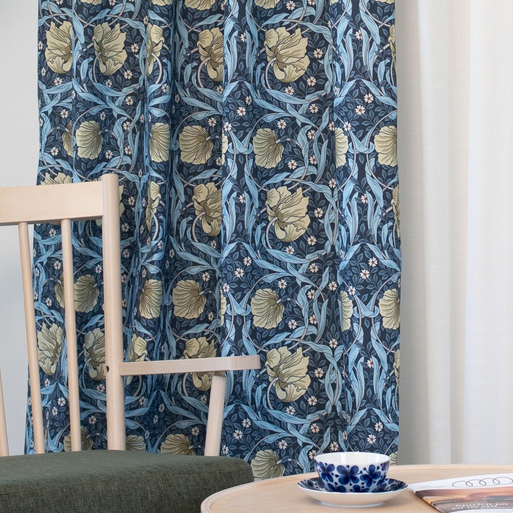 Grace blå gardiner - Klassisk blommig Arts and Crafts design