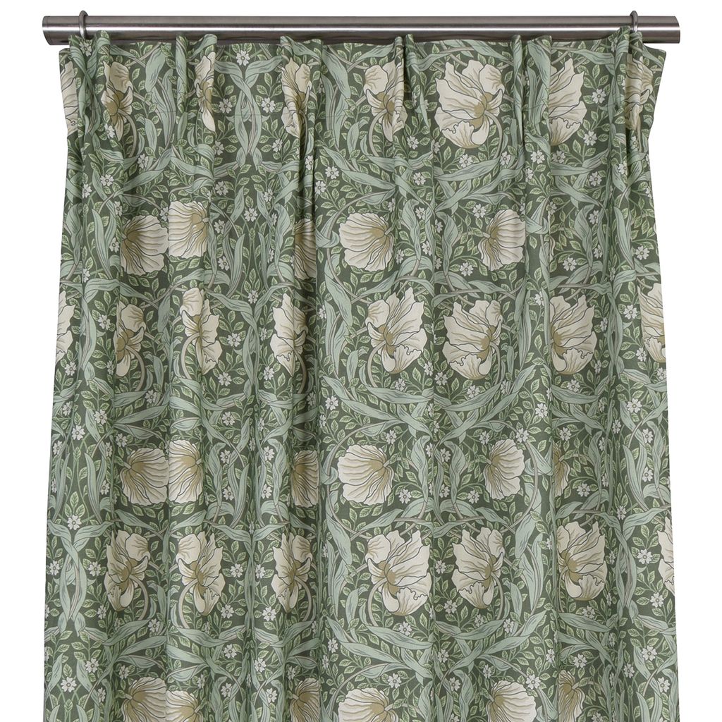 Beskrivning av Grace grön gardiner - Klassisk blommig Arts and Crafts design