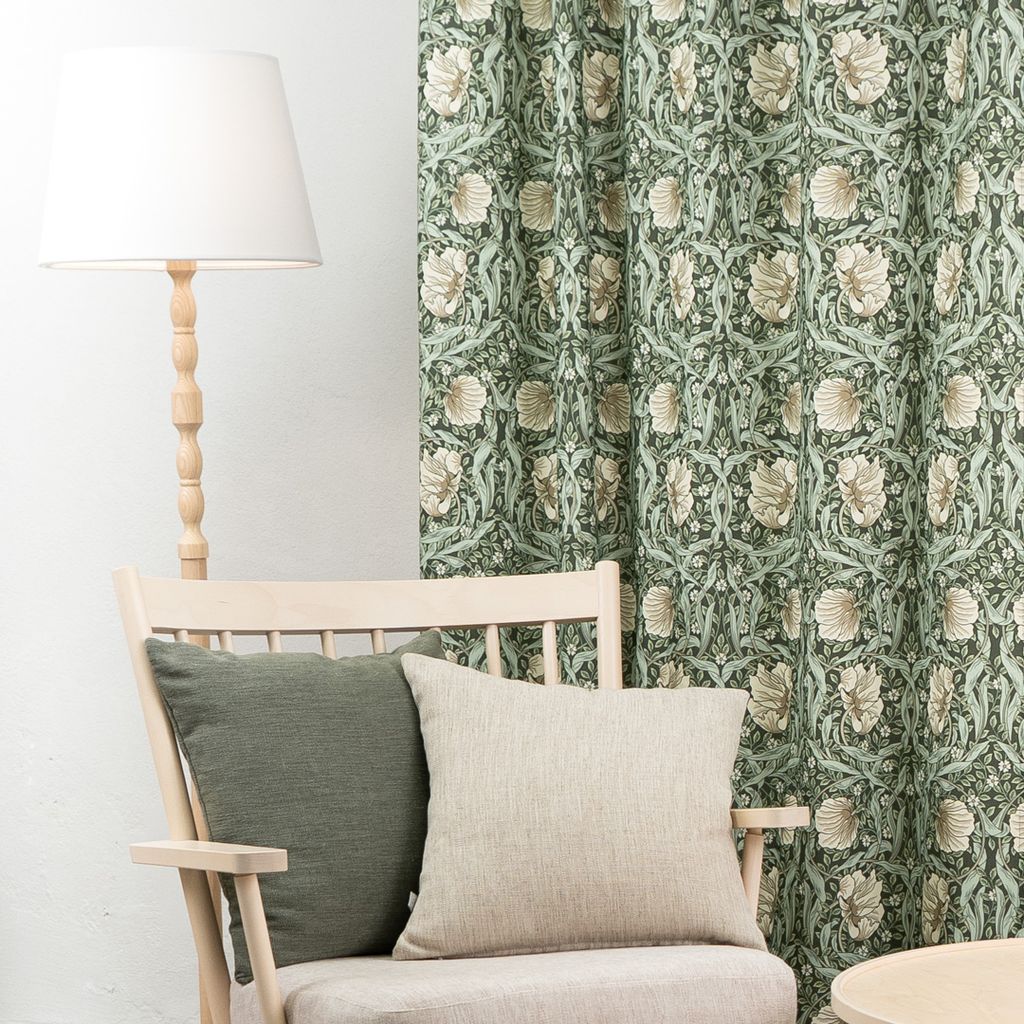 Beige och grön blommigt Morris tyg i fin bomulls kvalité som lämpar sig bra till gardiner, duk, kuddar, babynest m.m.