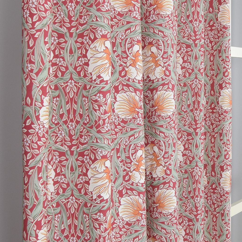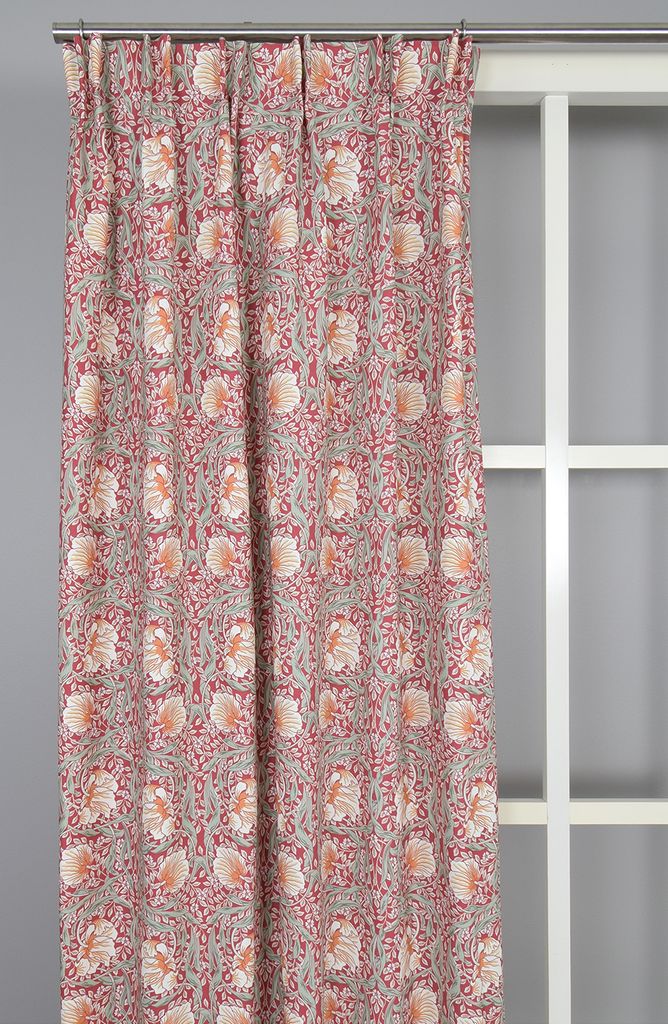 Beskrivning av Grace röd gardiner - Klassisk blommig Arts and Crafts design