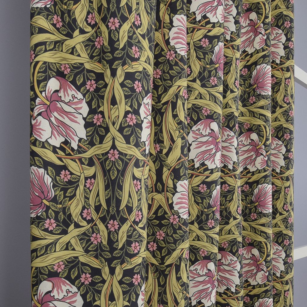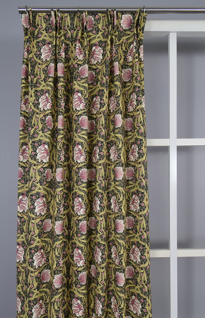 Beskrivning av Grace rosa-grön gardiner - Klassisk blommig Arts and Crafts design