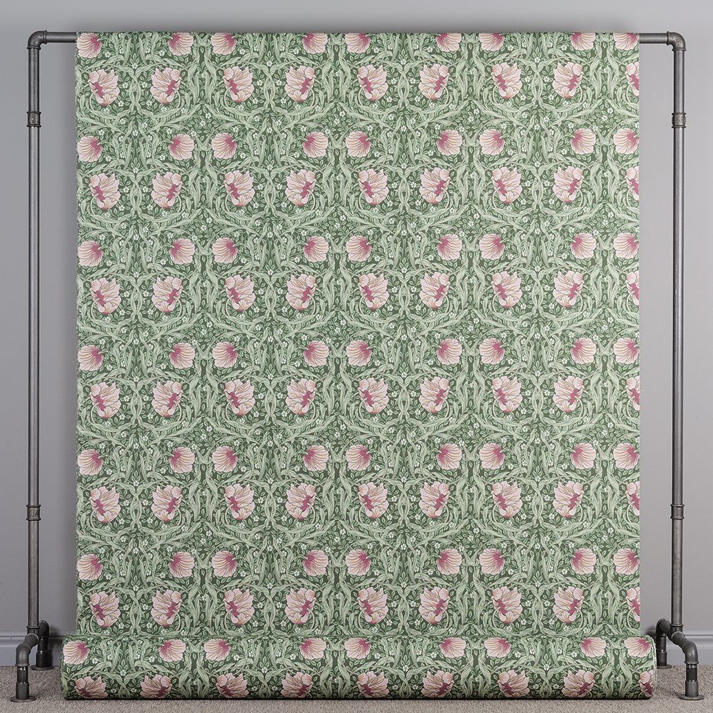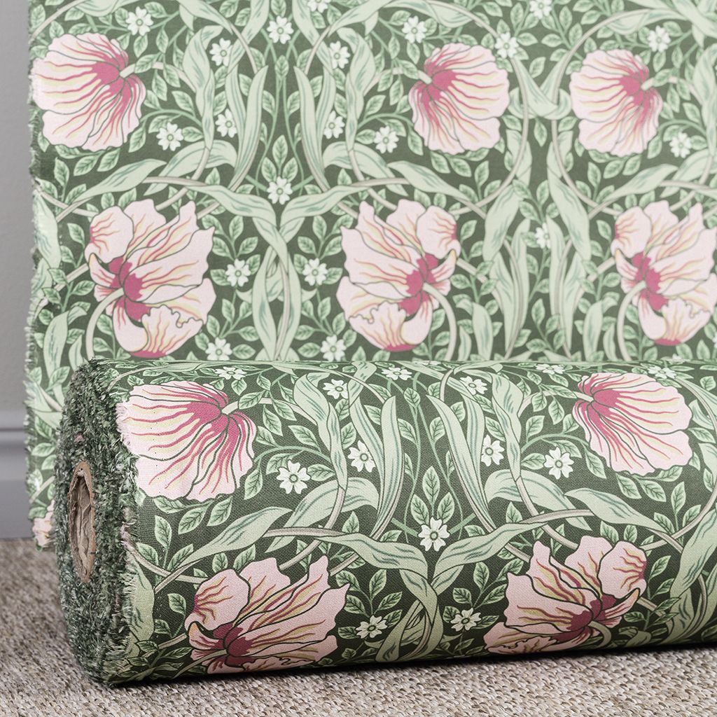 Grace rosa-ljusgrön tyg - Klassisk blommig Arts and Crafts design