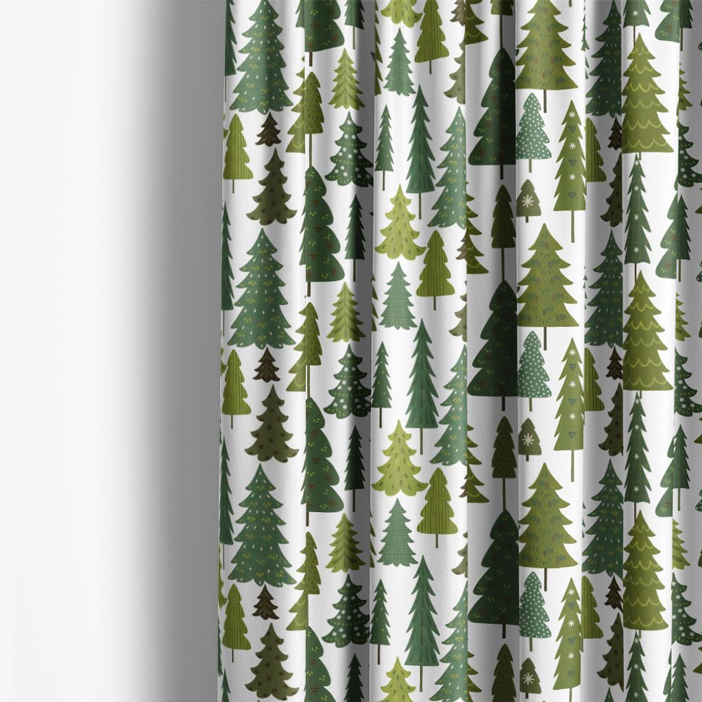 Mönster av olika granar i grönt mot den ljusa bakgrunden ger en fräsch och naturlig känsla.