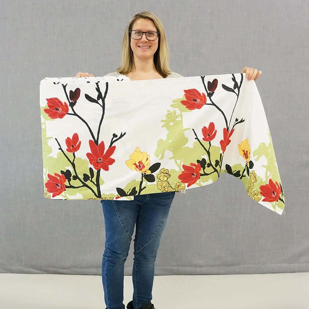 Beskrivning av Grandiflora röd-grön gardinkappa metervara