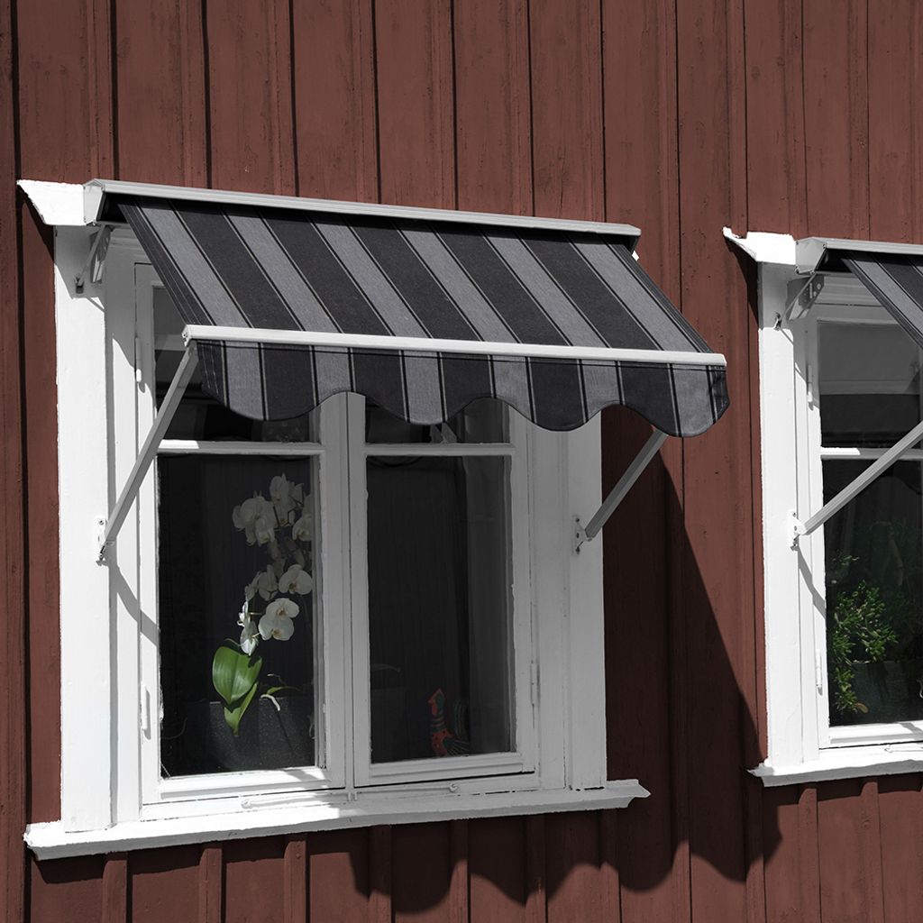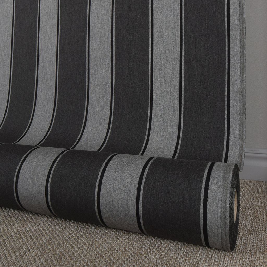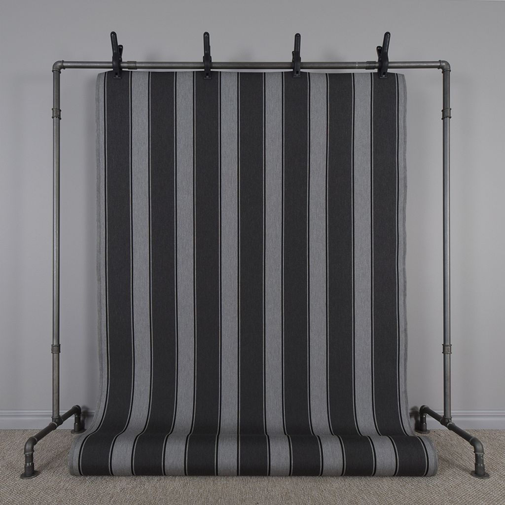 Beskrivning av Grenada Grå-Svart Randig Markisväv 130cm Bred
