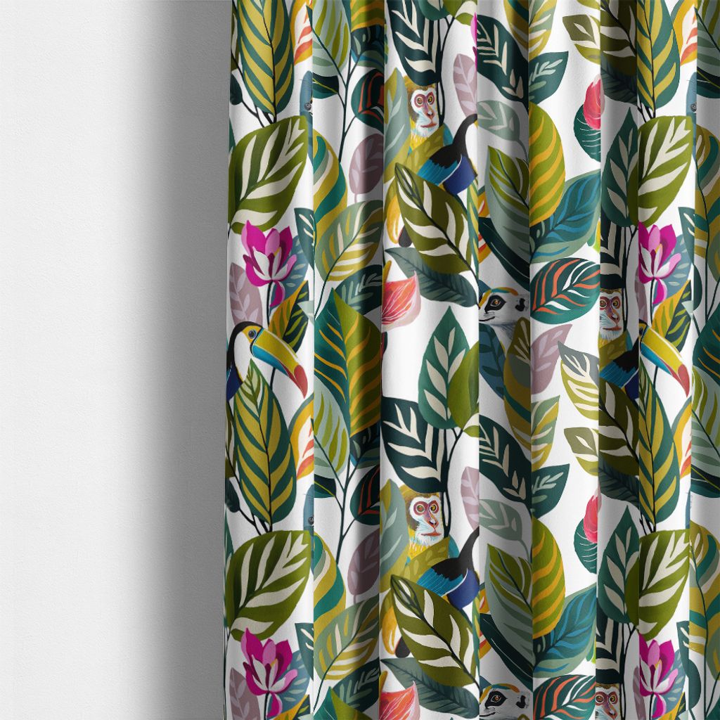 Låt naturens färgsprakande djungel flytta in med vårt Happy Fauna-gardintyg!