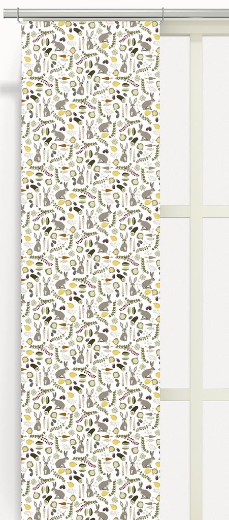 Beskrivning av Harens grönsaksfest grå panelgardiner