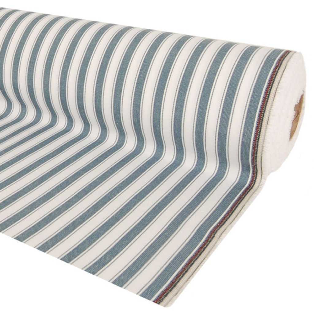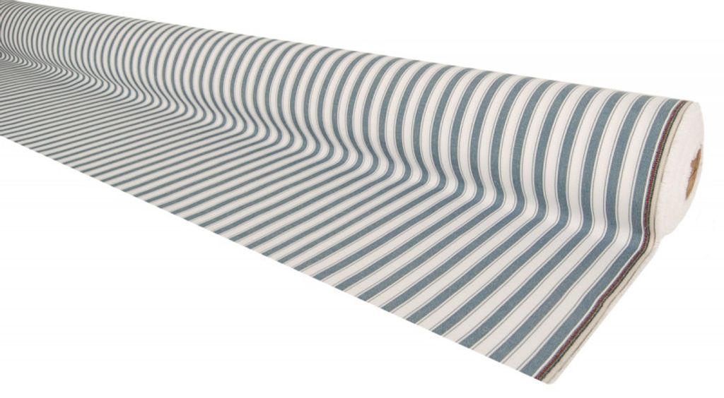 Beskrivning av Harlow duvblå-vit randigt tyg