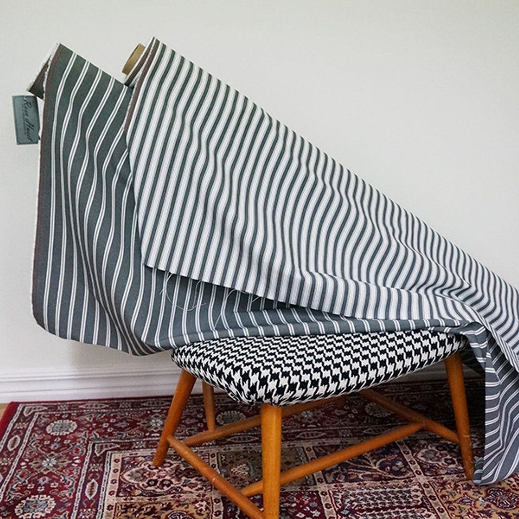 Randigt vävt tyg som är lika på båda sidorna. Tyget har en martindale på 35000 vilket gör att det passar både gardin och enklare möbel tapetsering.