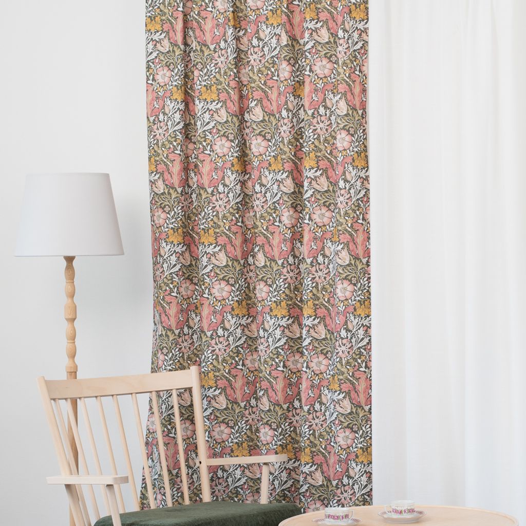 Tryckt en fin bomullsvara som hänger fint som gardiner.