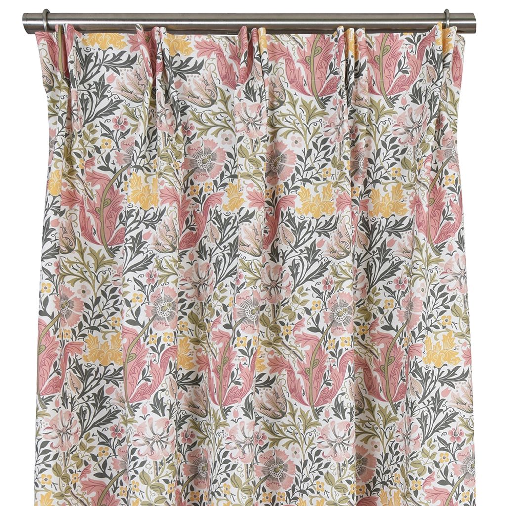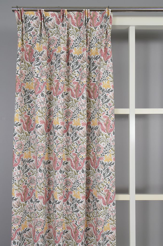 Harmony vit-rosa gardiner i härligt Arts and Crafts tyg med milda fina färger.