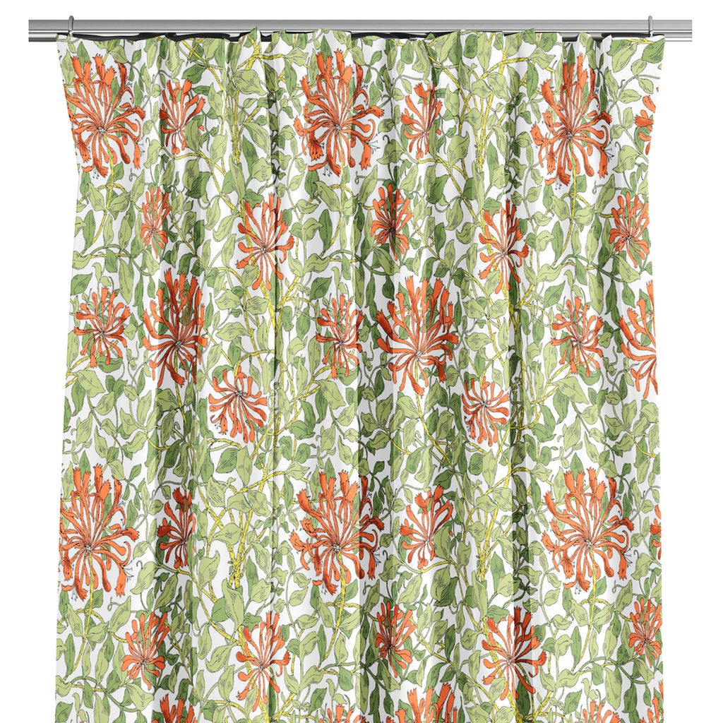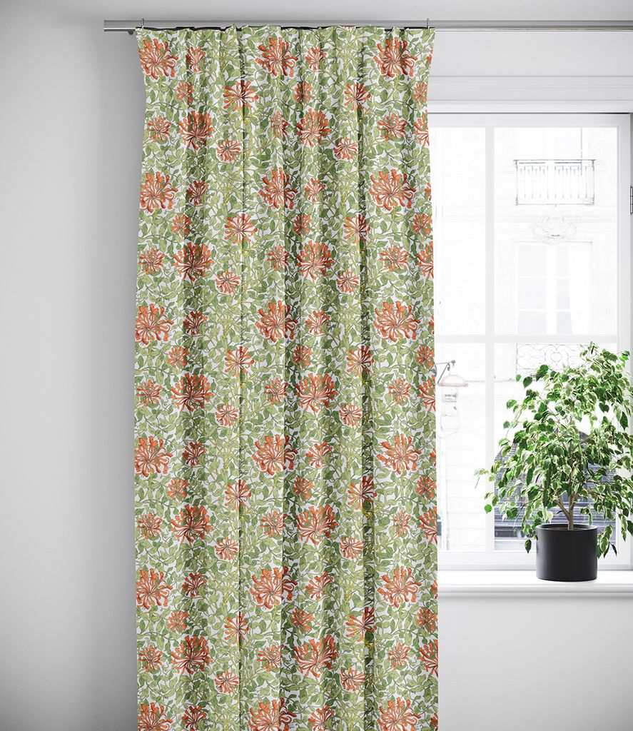 Honeysuckle terrakotta gardiner har ett livfullt blommönster i grönt och terrakotta på ljus botten. Gardinerna är sydda i 100 % Oeko-Tex-certifierad bomull med fint fall och passar perfekt för dig som vill addera färg och grönska till inredningen.