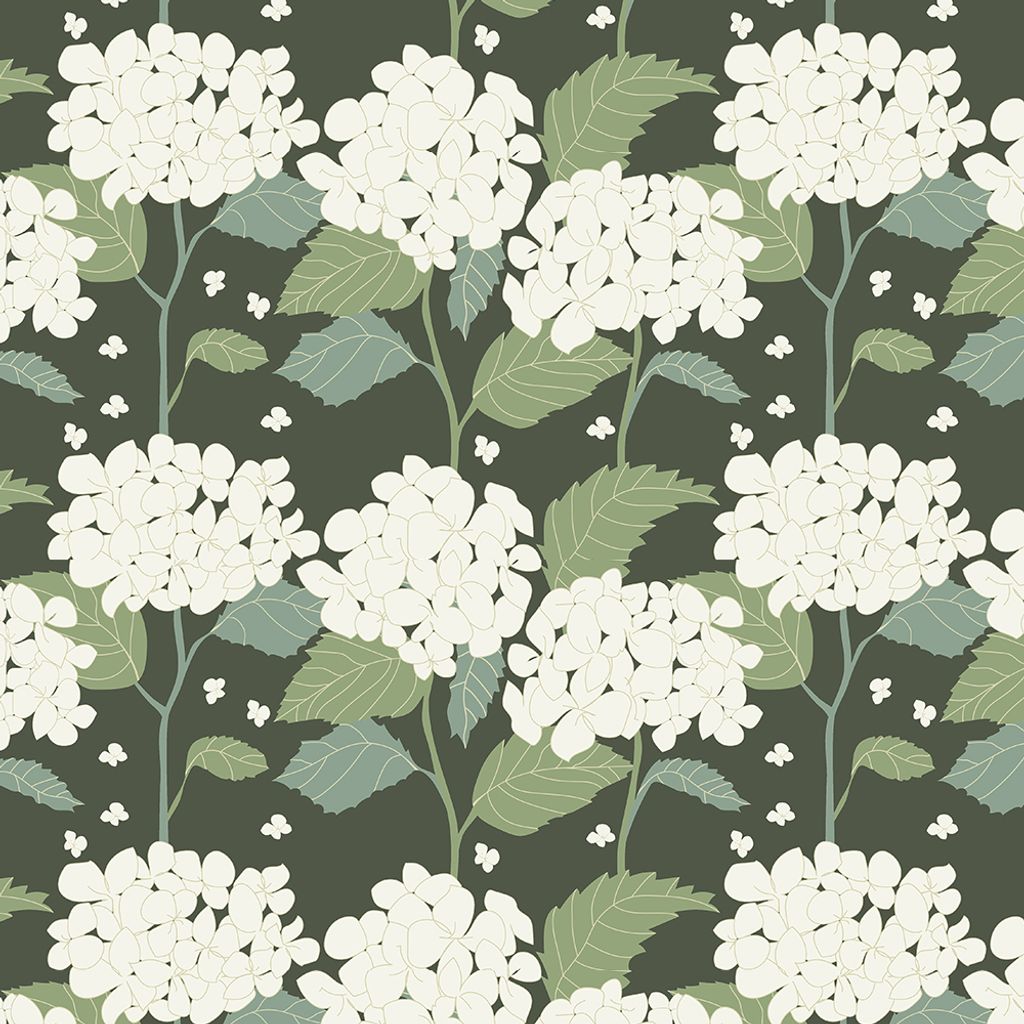 Ge ditt hem en känsla av botanisk elegans med vår Hortensia Grön bordsduk – en hyllning till den klassiska hortensians skönhet. Mönstret består av generösa blomklasar i mjukt krämvita toner, omgivna av stiliserade blad i olika nyanser av grönt, allt mot en djup grön bakgrund som skapar kontrast och lugn.