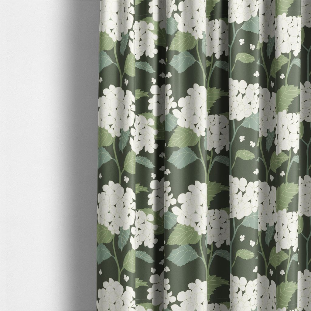Hortensia grön tyg metervara. Textilkonst från Arvidssons Textil, designat av Linda Svensson Edevint och framställt med omsorg i Europa på deras klassiska halvpanama-tyg.