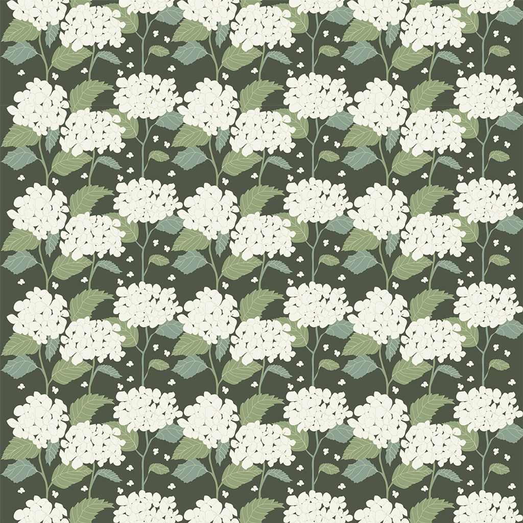 Hortensia grön tyg metervara – ett vackert mönstrat bomullstyg designat av Linda Svensson Edevint