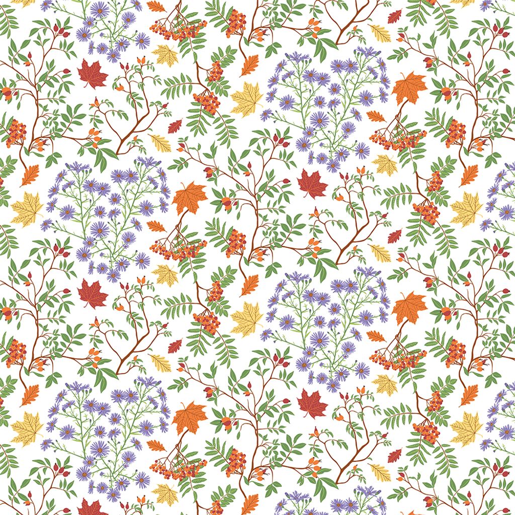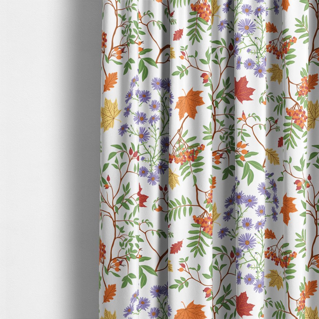 Bomullstyg med höstasters i flera färger. En livfull metervara från Arvidssons Textil – perfekt för gardiner och kreativa projekt.