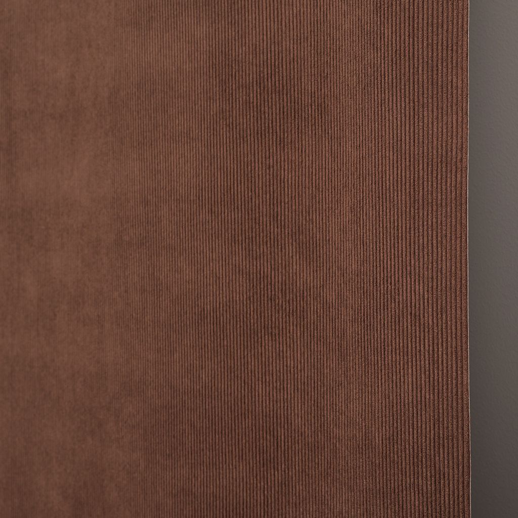 Det ribbade tyget fångar ljuset på ett vackert sätt och skapar en subtil variation i ytan, vilket gör att möbler klädda i Huggy Brun får ett levande och elegant utseende. Samtidigt ger materialet en mjuk och behaglig känsla som gör möbeln extra trivsam att använda.