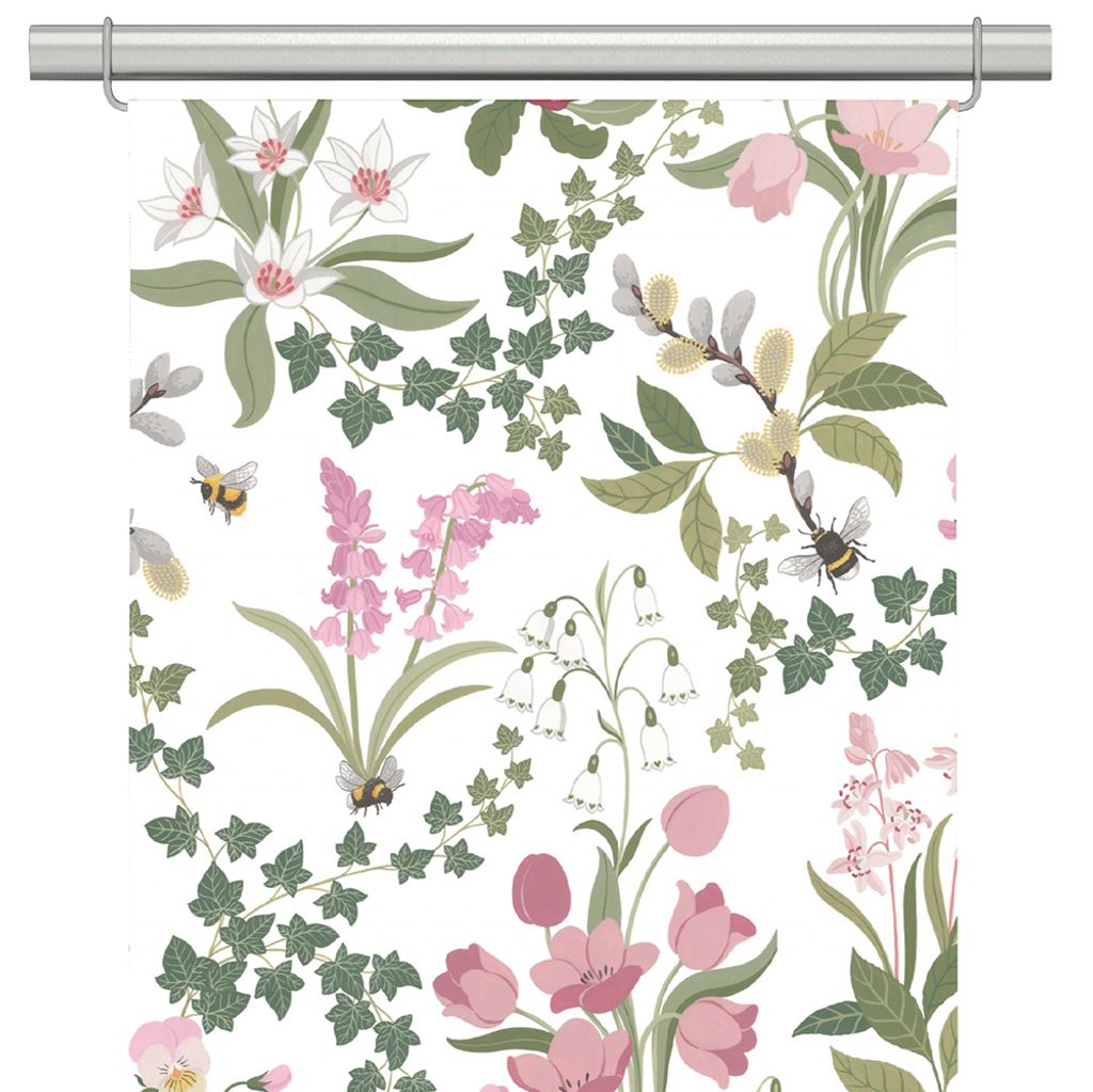 Färgpaletten i dämpat grönt, ljusbeige, puderrosa och vitt gör gardinen enkel att matcha med såväl ljusa som naturliga inredningar. Den passar utmärkt i kök, vardagsrum eller matsal där du vill skapa ett fräscht och harmoniskt intryck.