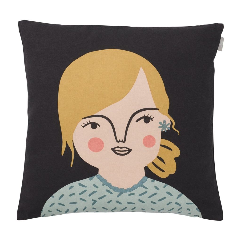 Handtryckt kuddfodral, Ida är lite av ett yrväder som är ganska klumpig och har alltid nära tills skratt. Hon älskar att sjunga men sjunger hellre än bra. Hon är irriterande morgonpigg och missar aldrig en vacker soluppgång. Tvätta med omtanke. Kompiskudde från Spira of Sweden.