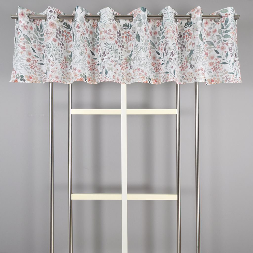 Beskrivning av Ida persika gardinkappa med blomstermönster och öljetter