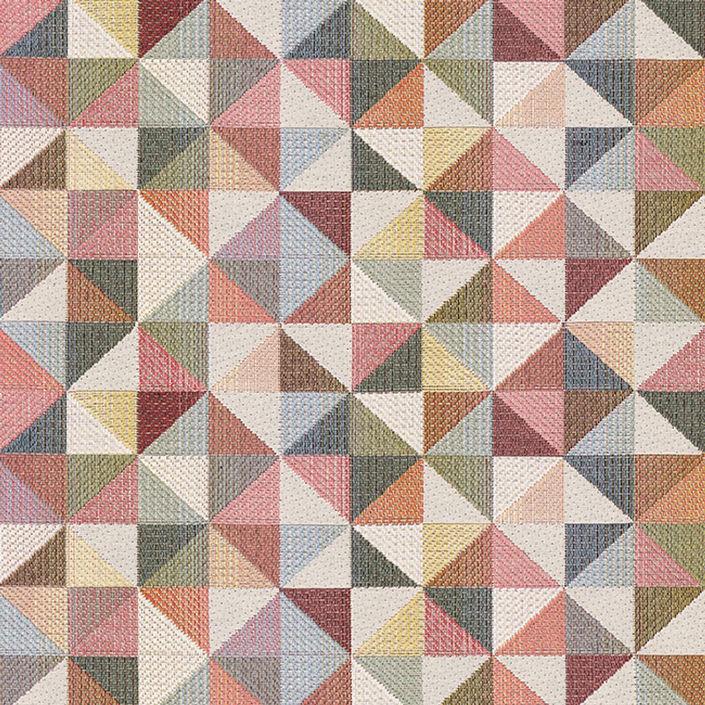 Vackert mönstrat möbeltyg med trianglar pastellfärger.