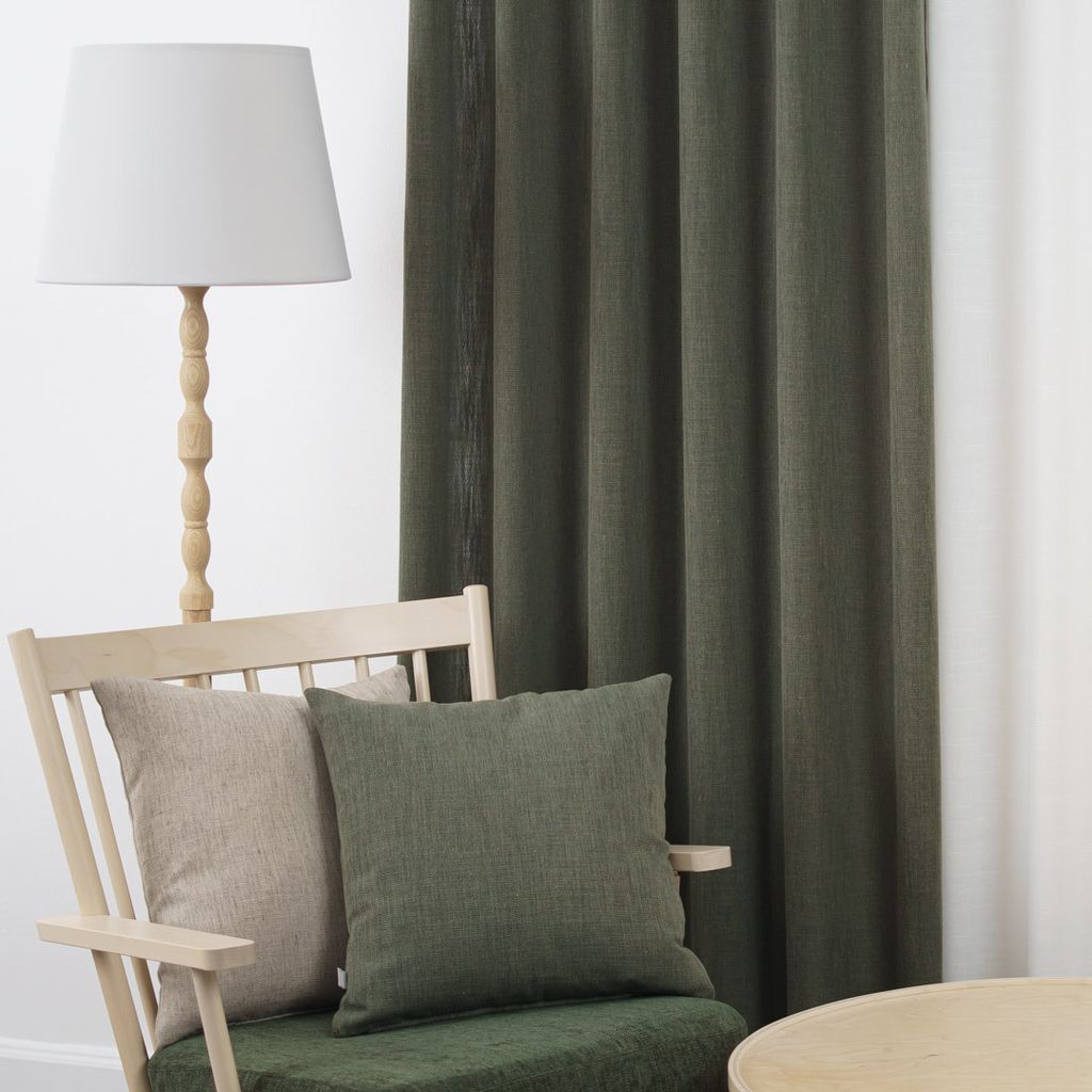 Beskrivning av James grön gardiner – Modern linne-look med lyxigt fall