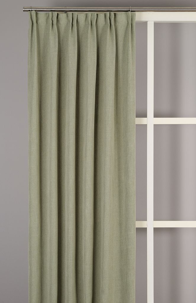 Beskrivning av James ljusgrön gardiner – Modern linne-look med lyxigt fall