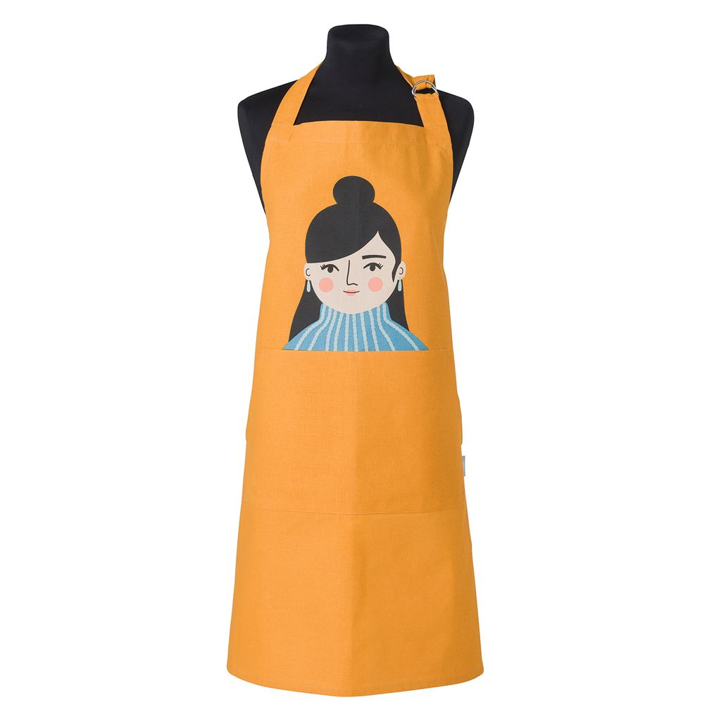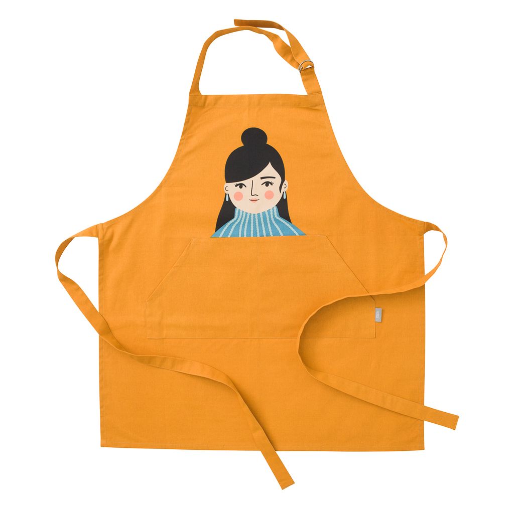 Jasmine förkläde är till för dig som gillar att blanda passion med mjöl och kreativitet. Med sitt klargula tyg och charmiga handtryckta porträtt av Jasmine – en glad surdegsexpert med glittrande ögon och stickad tröja – sprider detta förkläde både färg och glädje i köket. Hennes skratt bubblar som hennes degar, och hon kan prata mjölksyrabakterier i timmar!