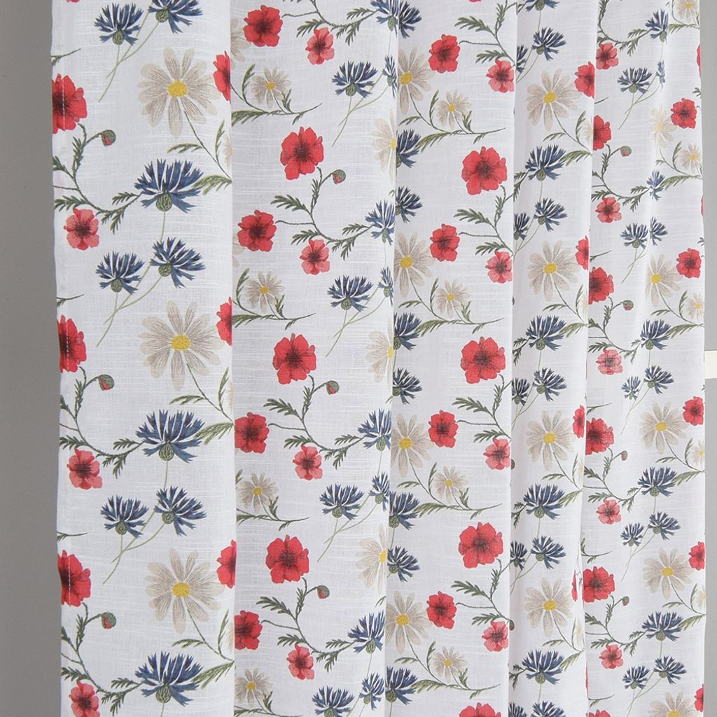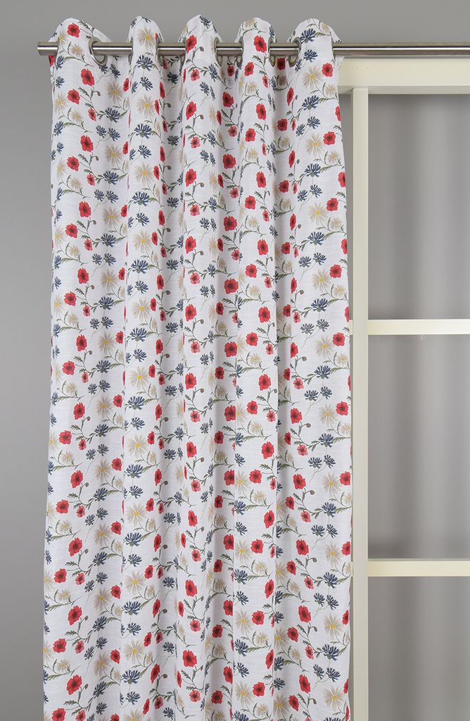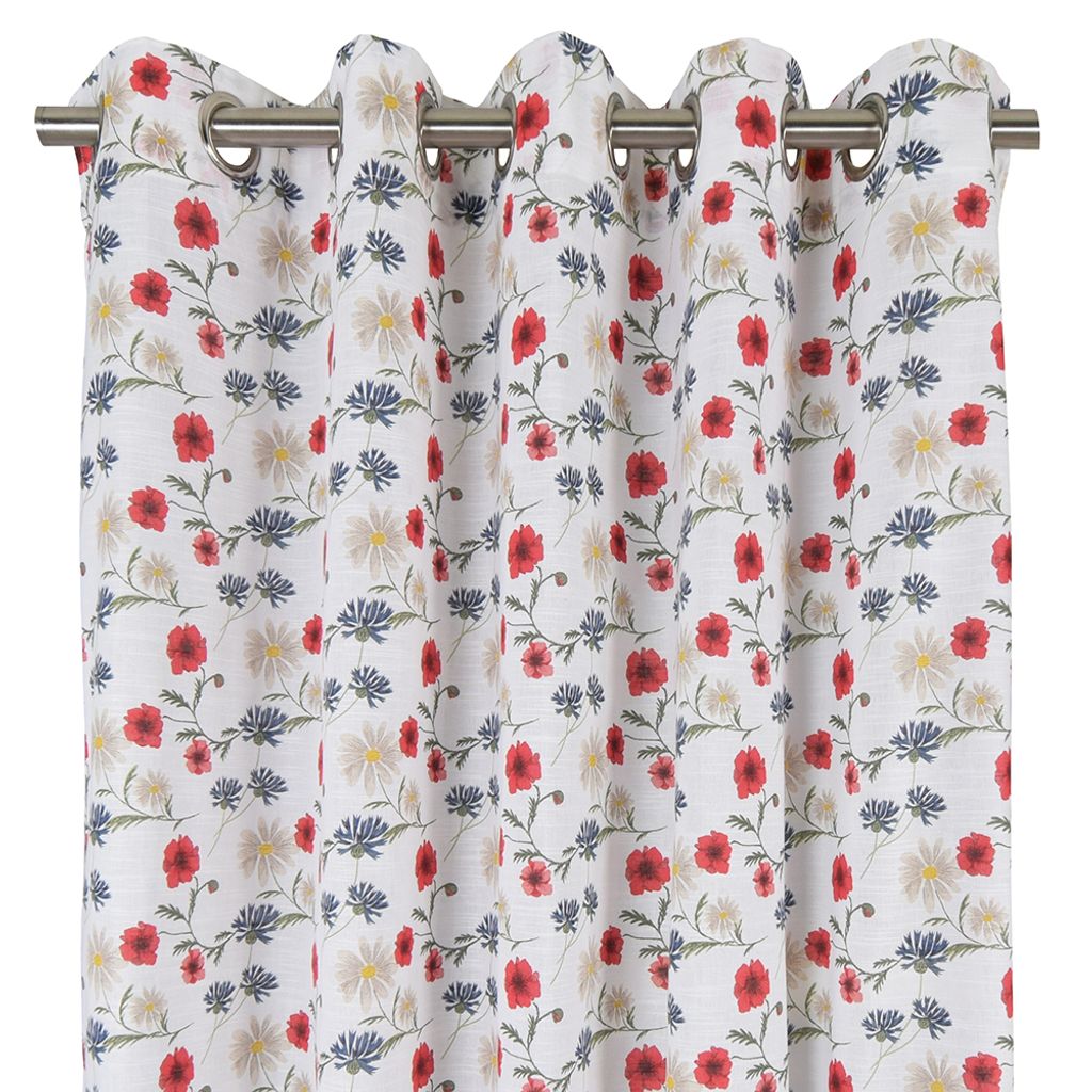 Öljettlängder i 2-pack. Färdigsydda gardiner med vit botten och färgglada sommarblommor, öljetter att trä på gardinstången. Svensk design.