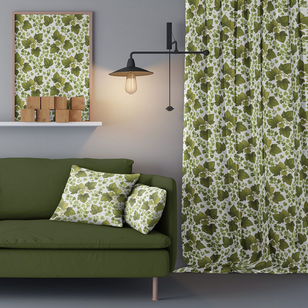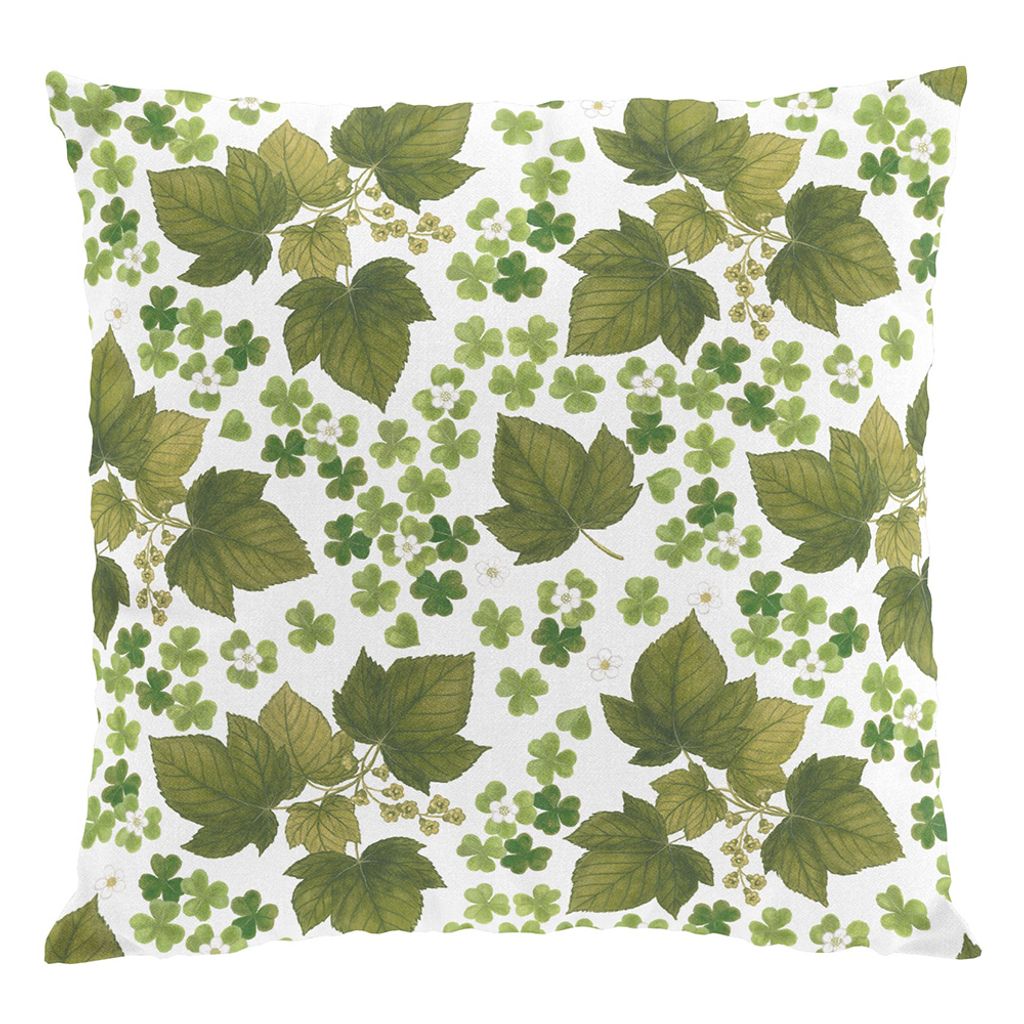 Härligt mönster med gröna blad på offwhite botten. Fodralet är 47x47cm med ett blixtlås i nederkant.