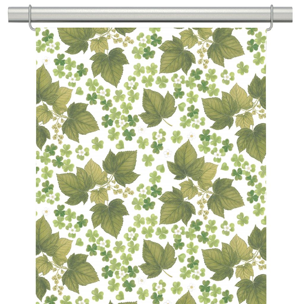 2-pack panelgardiner med fint mönster med gröna blad på offwhite botten.