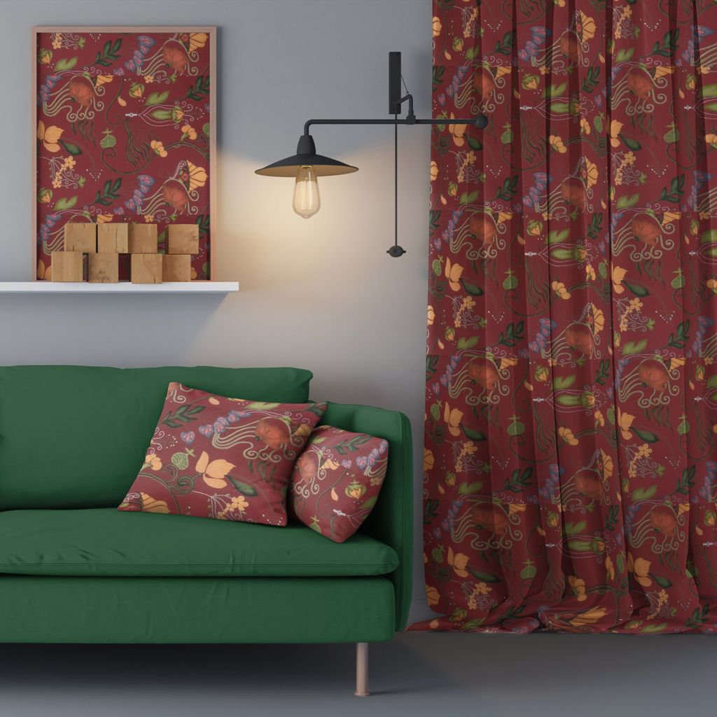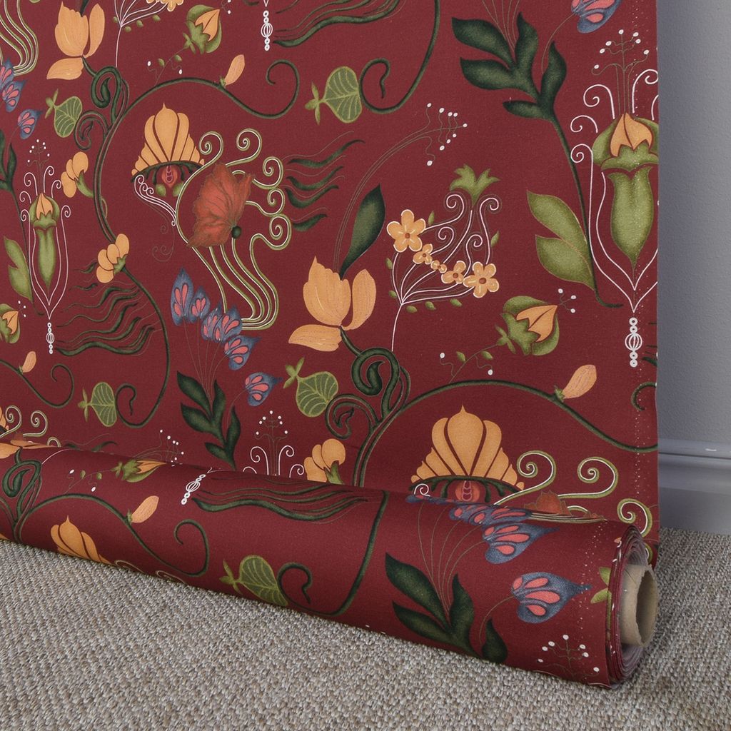Det populära mönstert Jose, tidigare kallad Kurbitz har kommit in i en ny magisk färgställning.Ett härligt blommönster i grönt, rosa och orange på en svart botten som drar något åt det mörkgröna hållet.Populärt gardin och inredningstyg som passar i det flesta miljöer.