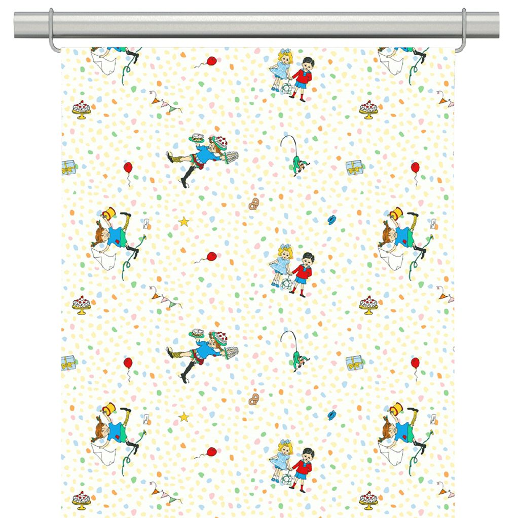 Den här lekfulla panelgardinen från Arvidssons Textil bjuder in till glädje, färg och rörelse. Med motiv från Astrid Lindgrens älskade värld får barnrummet en sagolik känsla – här dansar Pippi med vänner, ballonger flyger och stämningen är på topp.
