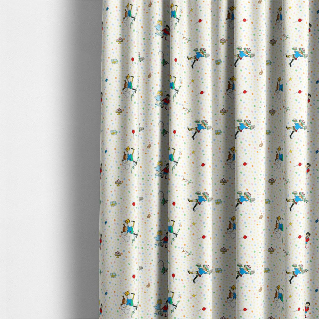 Bjud in till ett oemotståndligt kalas med tyget "Kalas hos Pippi"! Denna charmiga design är en hyllning till Pippi Långstrumps busiga värld där varje dag kan vara en fest. Med ett mönster fullt av lekfulla illustrationer föreställande Pippi, Tommy, Annika och Herr Nilsson i olika kalas scener skapar tyget en fantasifull och färgsprakande miljö som barn älskar.