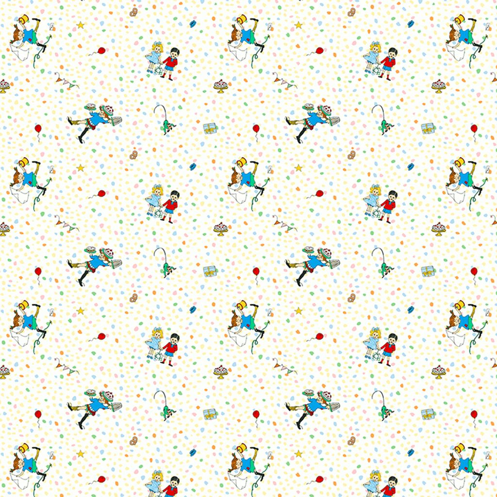 Ett sprudlande tyg fyllt med kalasglädje! Kalas hos Pippi är ett barnrumstyg med älskade karaktärer från Astrid Lindgrens värld – perfekt för kreativa inredningsprojekt.
