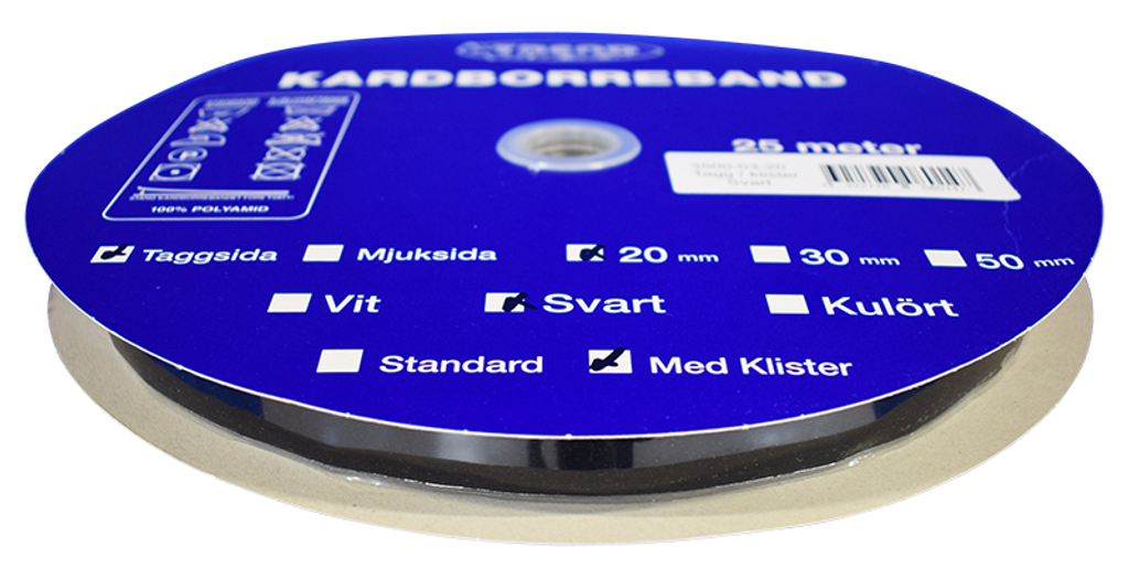 Kardborreband tagg klister svart 20mm - 25m rulle