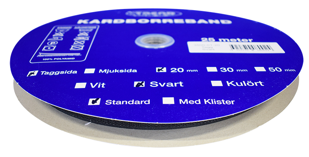 Kardborreband tagg svart 20mm - 25m rulle