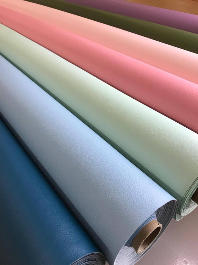 Fuskskinn i ljusblått. En serie galon i många härliga färger och med en slitstyrka på 20000 martindale. För omklädning av bil & båt inredningar, soffor stolar mm.