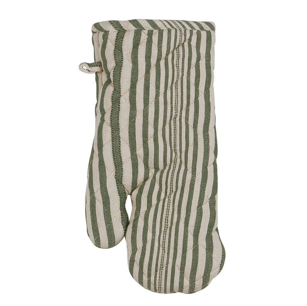 Grillvante med grön och linne randigt tyg. En fin inredningsdetalj som lyfter ditt kök.