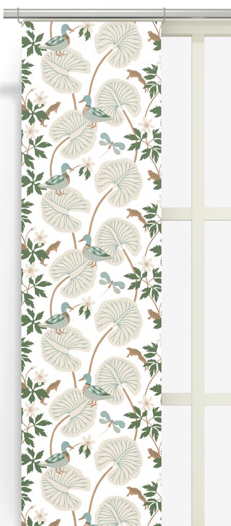 2-pack Trädgård offwhite-grön panellängd panelgardiner från Arvidssons Textil, designade av Hanna Werning. Ett tidlöst mönster som lyser upp både vår och höst. Tillverkad i Estland