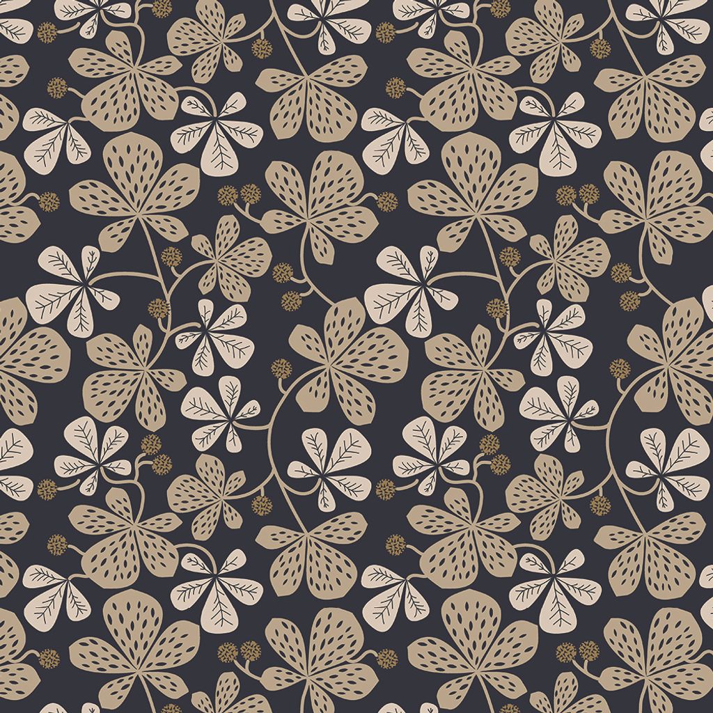 Bordsduk Kastanjer grå-brun har ett livfullt och naturinspirerat mönster som fångar skönheten i kastanjeträdets bladverk.