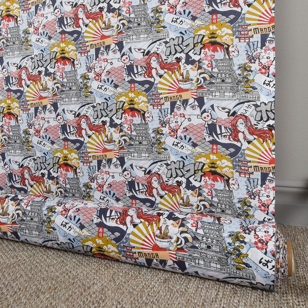 Beskrivning av Kawai bomullstyg manga inspirerat mönster