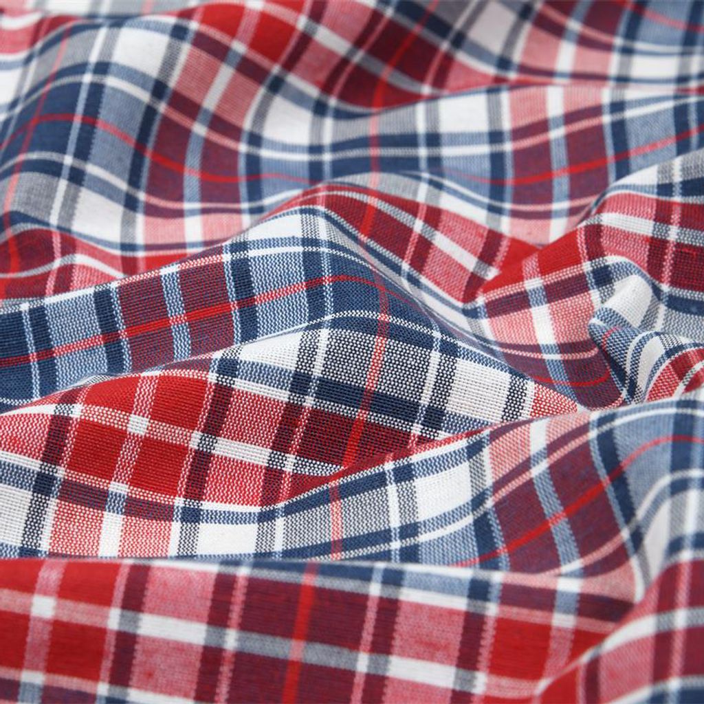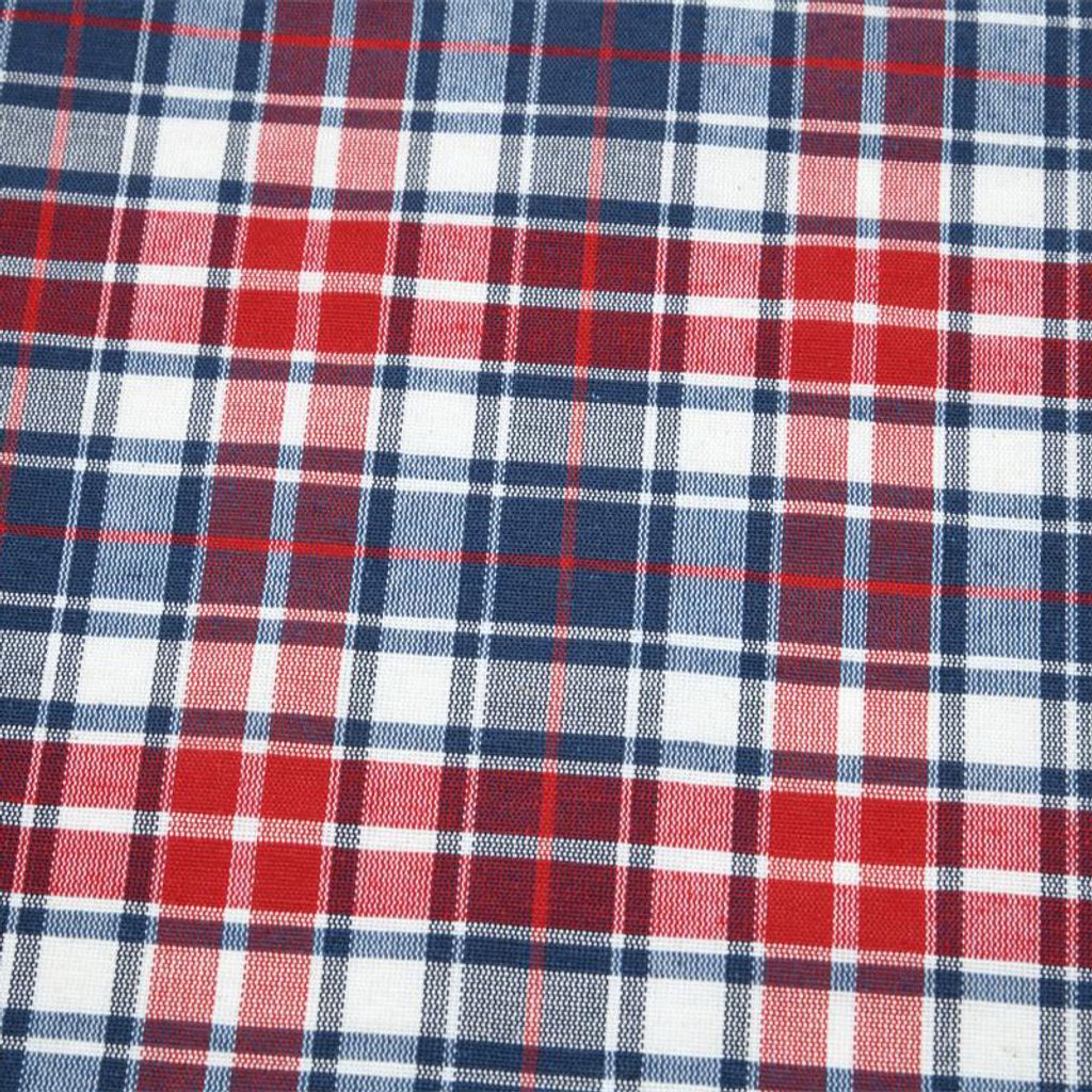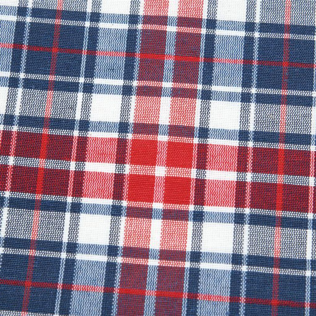 Rutigt blått, rött och offwhite tyg som lämpar sig bra till dukar och gardiner.
