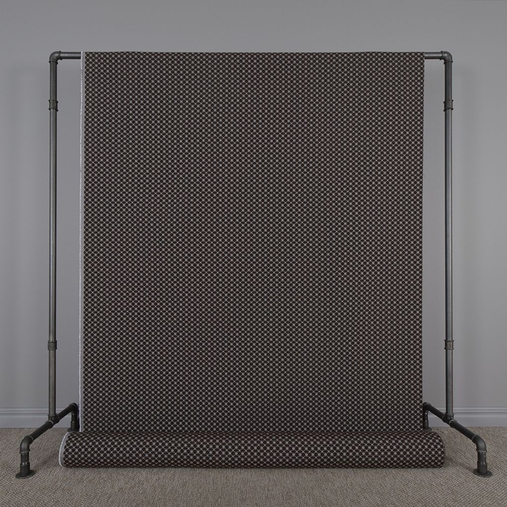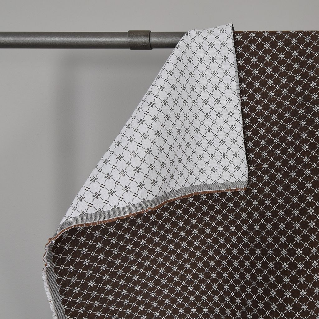 Ett vävt tyg med ett bolster liknande mönster i brunt.