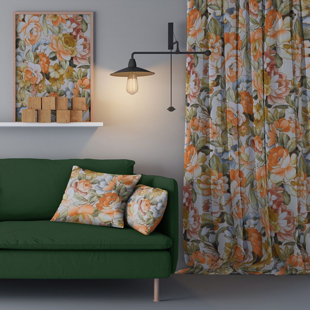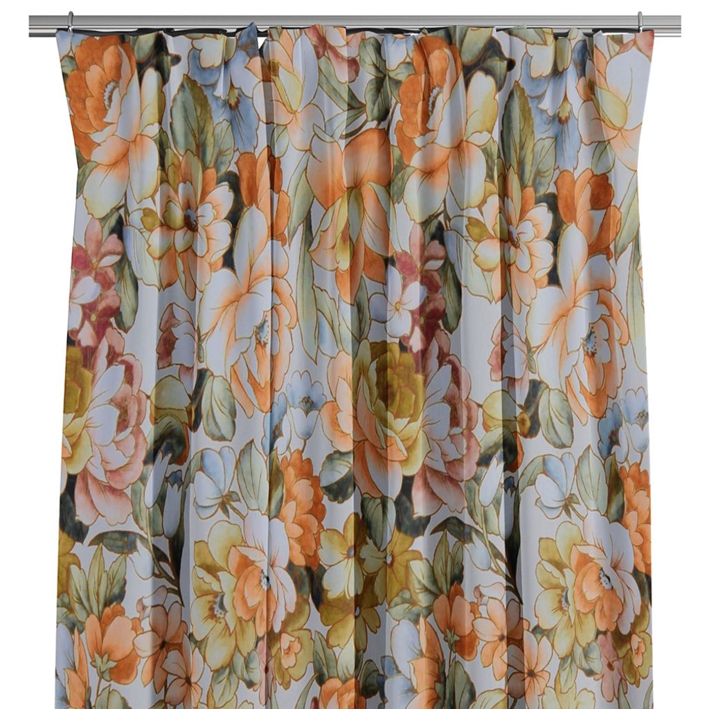 Stormönstrade gardiner i härliga färger med stora blommor. Digitaltryckt på ett vitt tyg så baksidan är vit.