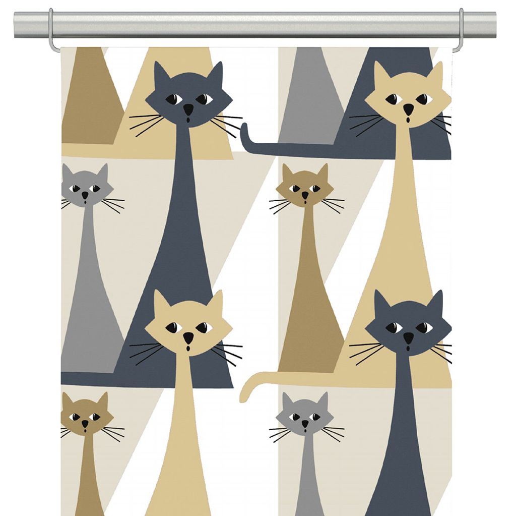 Kitty beige-grå panelgardiner med retro katter
