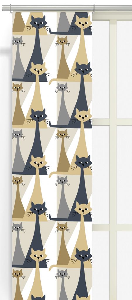Kitty beige-grå panelgardiner med charmigt retroinspirerat kattmönster. Perfekt för dig som vill tillföra en lekfull och stilren touch i hemmet.