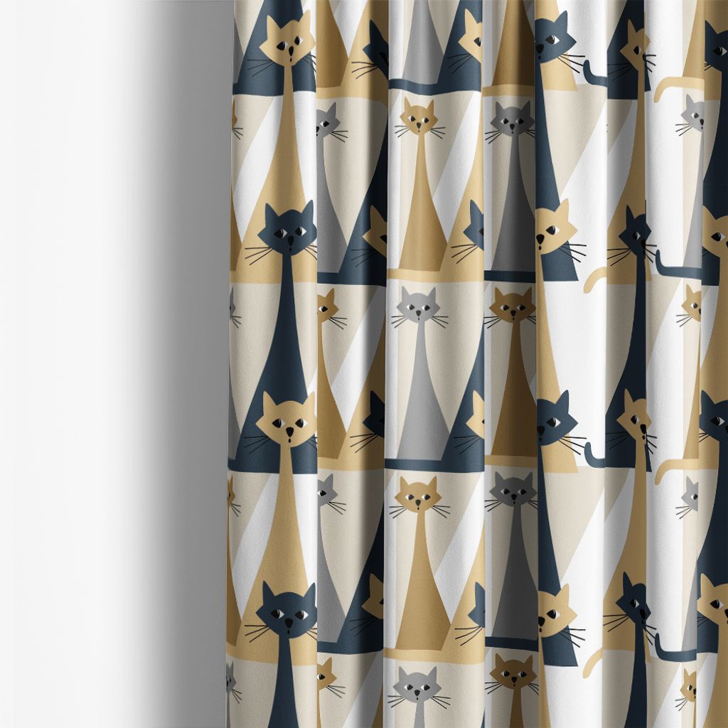 Kitty kännetecknas av stiliserade katter i eleganta nyanser av beige, grått och svart, vilket skapar en modern och grafisk design. Perfekt för gardiner, kuddar, eller andra inredningsprojekt där du vill lägga till en rolig och stilfull detalj.