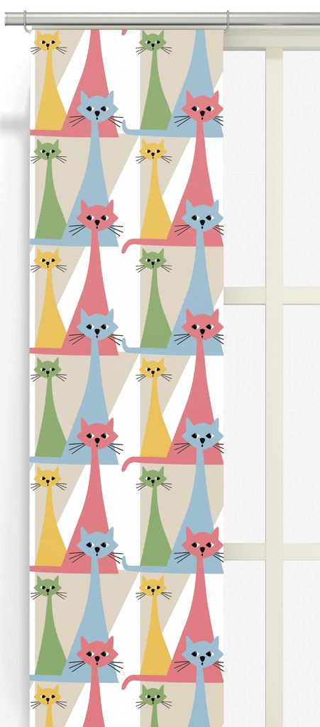 Beskrivning av Kitty multi panelgardiner med retro katter